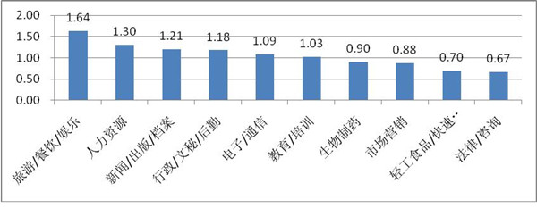 图表10本科生求职者“人求岗”指数排名前10位的职位