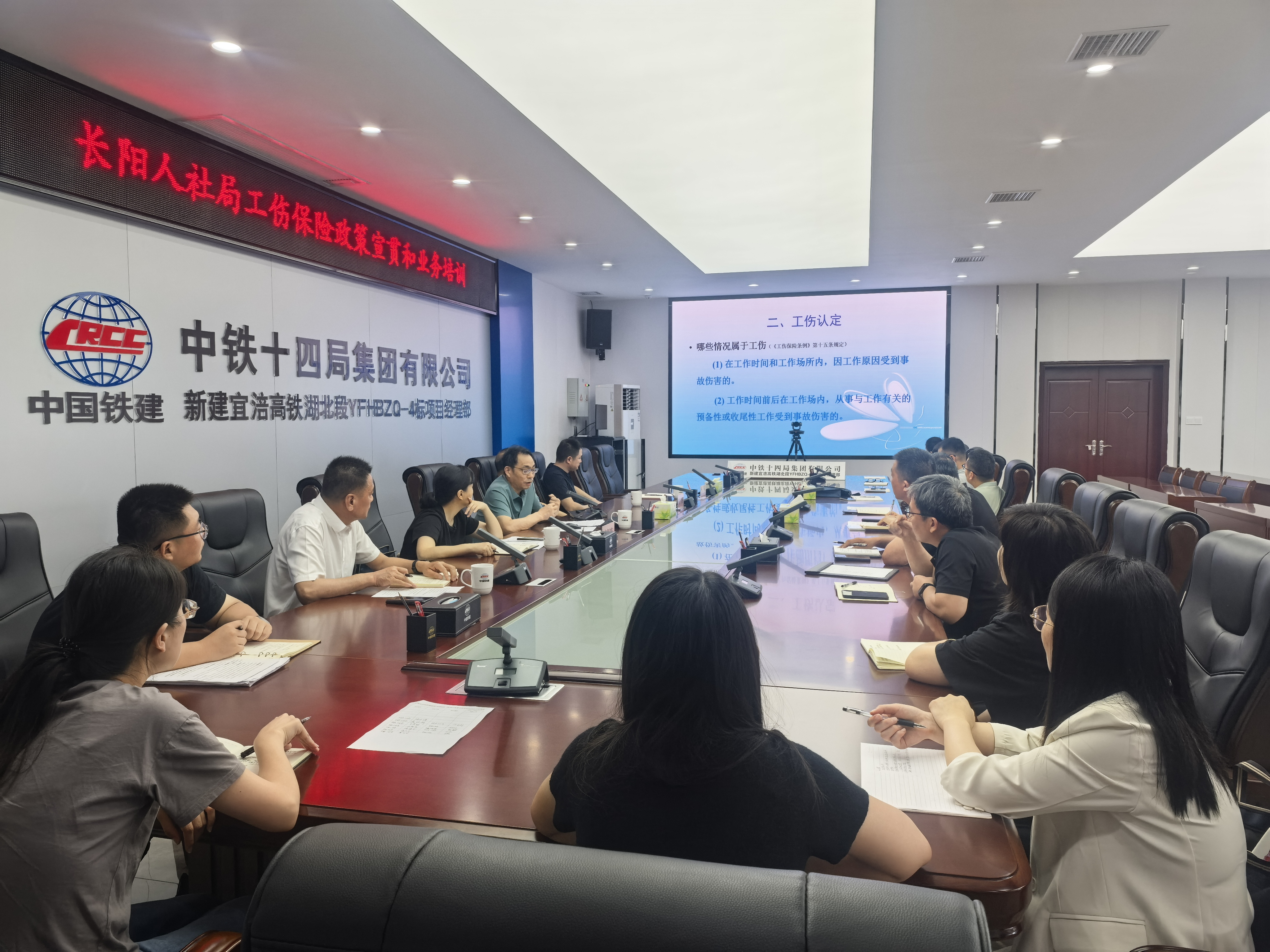 近日,为进一步普及工伤保险政策,保障劳动者合法权益,长阳县人社局组织社会保险和劳动保障专业人士走进中铁十四局新建宜涪高铁湖北段YFHBZQ-4标项目部,开展“工伤保险走进生产一线”专题宣传活动。