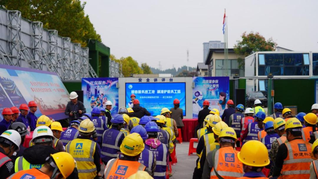 为扎实推进“社保服务进万家”活动走深走实,切实提升社保政策覆盖面与服务效能,10月29日上午,宜昌市社会保险基金征收稽查局联合市自然资源和城乡建设局、市建筑协会、中建科工集团有限公司等多家单位,走进宜昌数字经济产业科创中心项目施工现场,开展以“暖心服务进工地,精准护航务工路”宣传服务活动,吸引了近200名建筑工友积极参与。