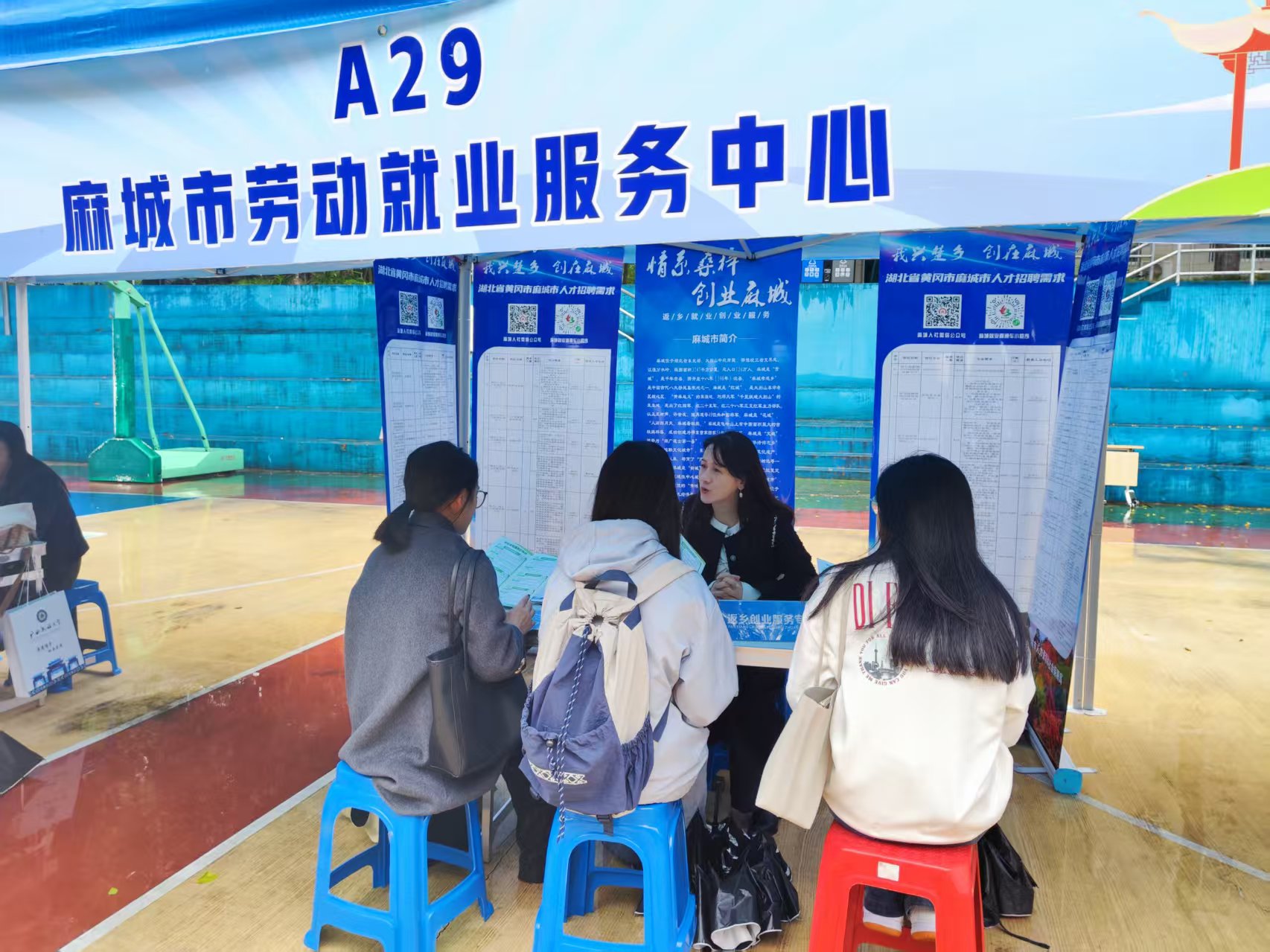 11月18日上午,广西民族大学相思湖校区灯光球场内,2026届毕业生专场招聘会气氛热烈。麻城市人社局精心设置展位,组织19家企业提供397个就业岗位,通过市情展板、政策手册和招聘海报相结合的方式,向学子们展示家乡的发展机遇与人才政策。现场专门设立的“返乡创业政策咨询专区”成为关注焦点,就业服务中心工作人员围绕创业补贴、场地支持、社保补贴等政策,为前来咨询的学生提供详细解答。招聘会共收到30余份《人才意向登记表》,其中12名毕业生明确表达了返乡创业意愿。