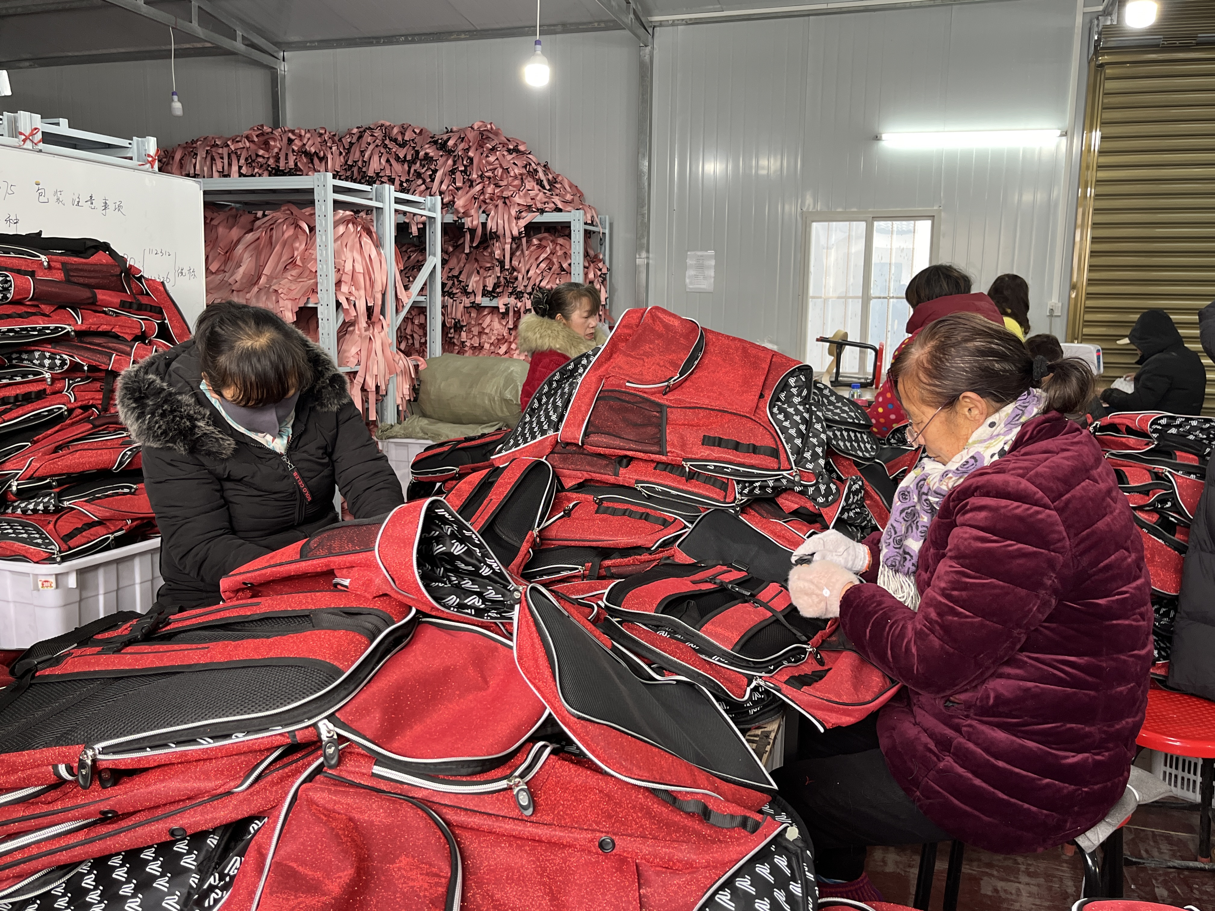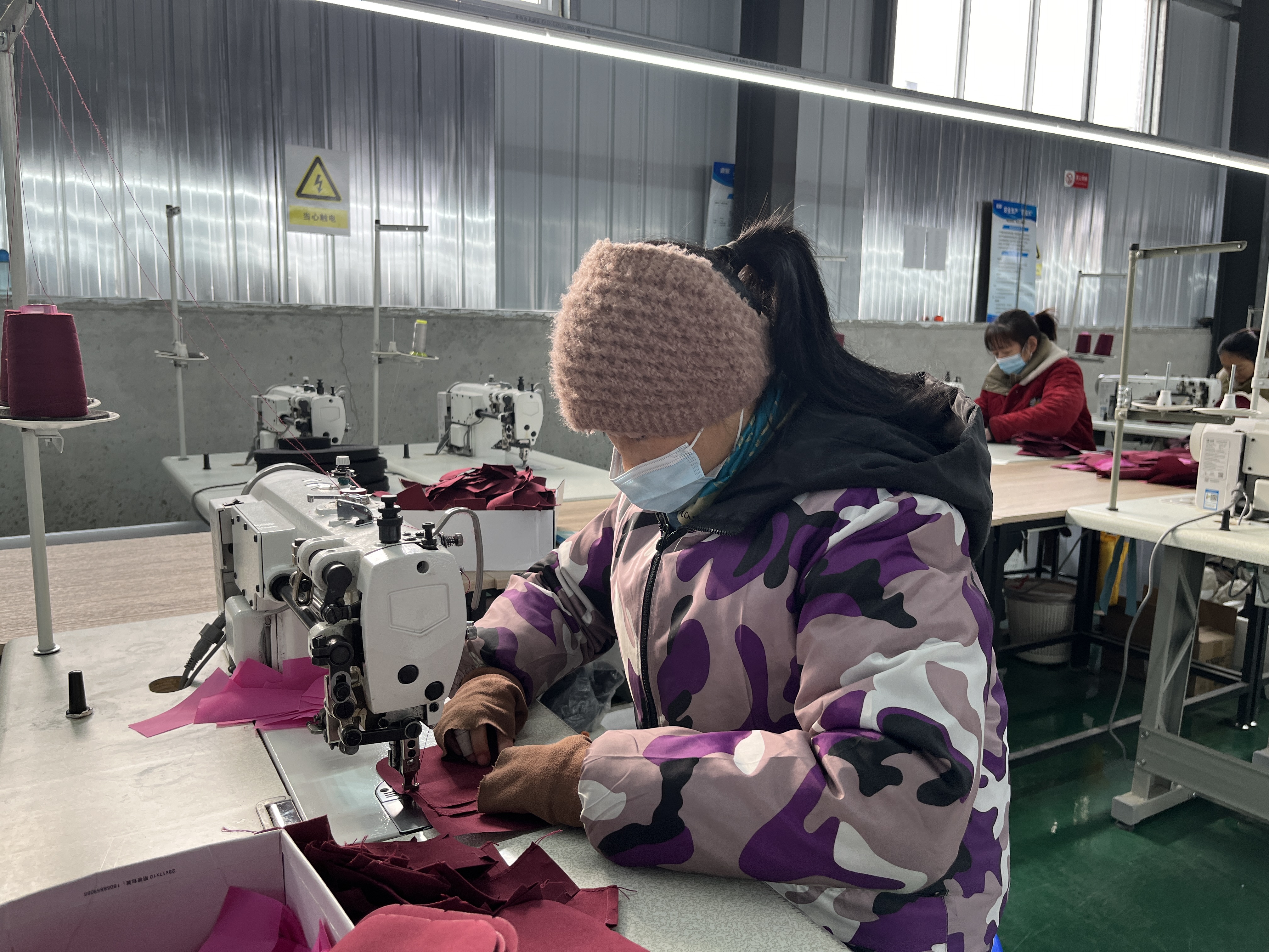 哒哒哒、哒哒哒……1月13日,在湖北省荆门市京山市坪坝镇红阳村,鼎新(湖北)箱包公司的车间内,一百多名工人正热火朝天地忙生产。从裁剪、缝纫到整烫、检验直至包装,每个环节都井然有序。这些工人的年龄跨度从20多岁至50多岁,他们都来自附近的镇村。