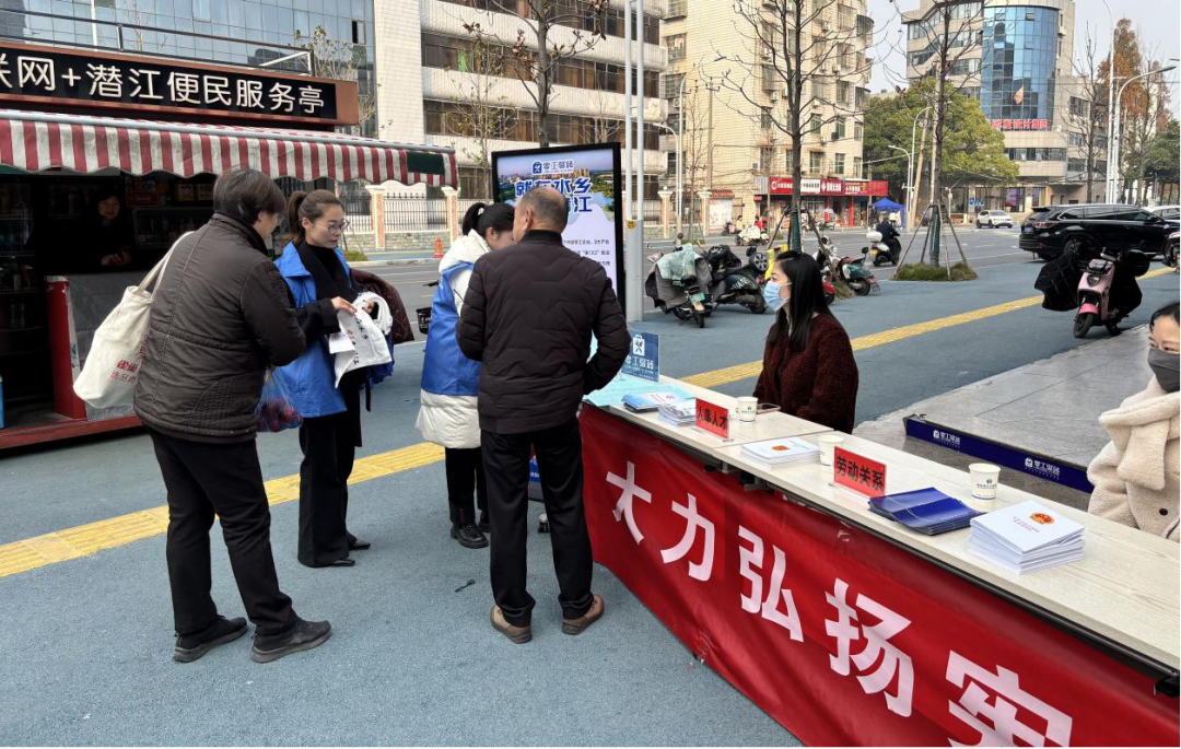 12月3日,以“宪法宣传周”活动为契机,潜江市人社局在当地零工驿站开展人社政策法规宣传活动,围绕延迟退休政策、工伤保险条例等群众关切热点,通过现场咨询、发放宣传手册、宣传制品等形式,现场为群众解答问题,社会反响良好。