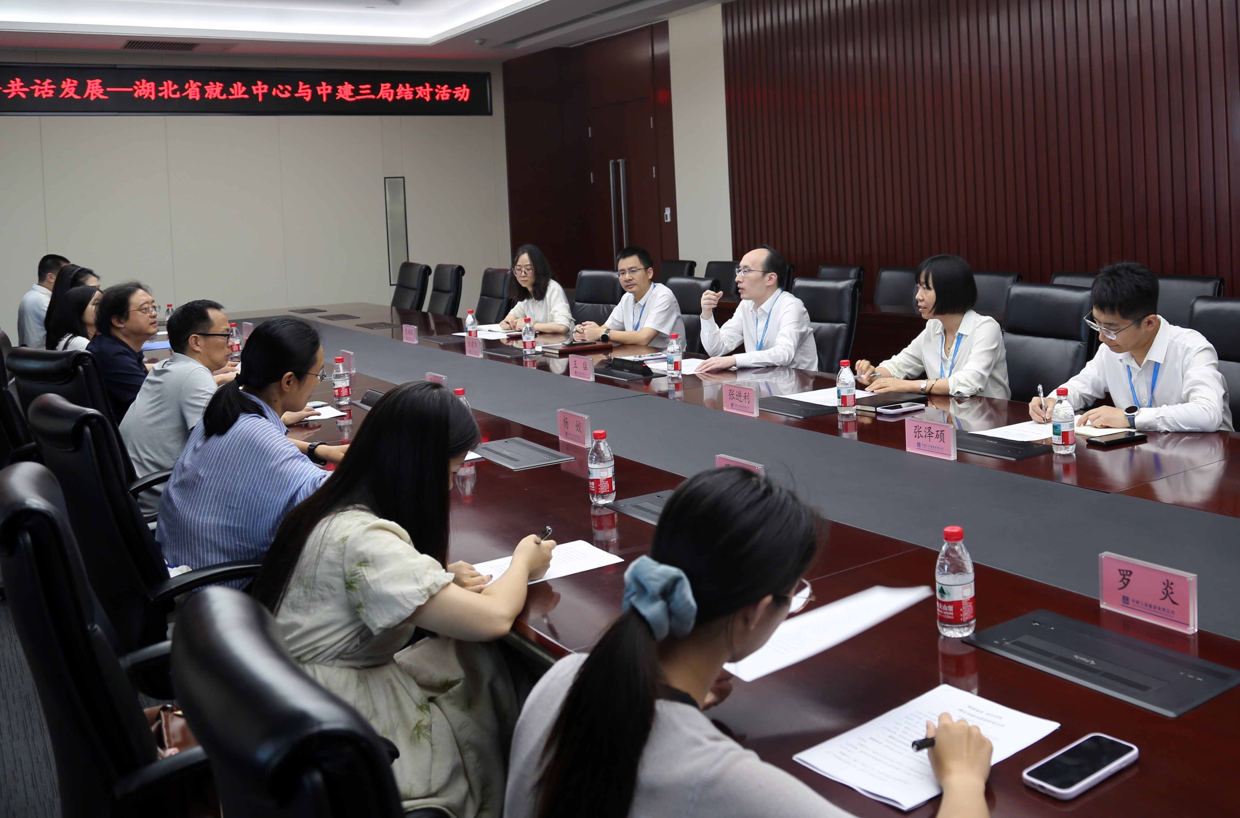 随后的座谈会上,政企双方进行了深入交流。中建三局人力资源部负责人介绍了企业发展历程、与各级人社部门的合作成效,并重点提出了企业在人才引进、技能人才培养、惠企政策落地等方面的具体需求。与会“人社专员”认真听取并记录了企业的诉求,现场就部分政策进行了答疑解惑,收集带回3类18个问题进行研究,并明确表示将建立问题清单,确保“事事有回应、件件有落实”。