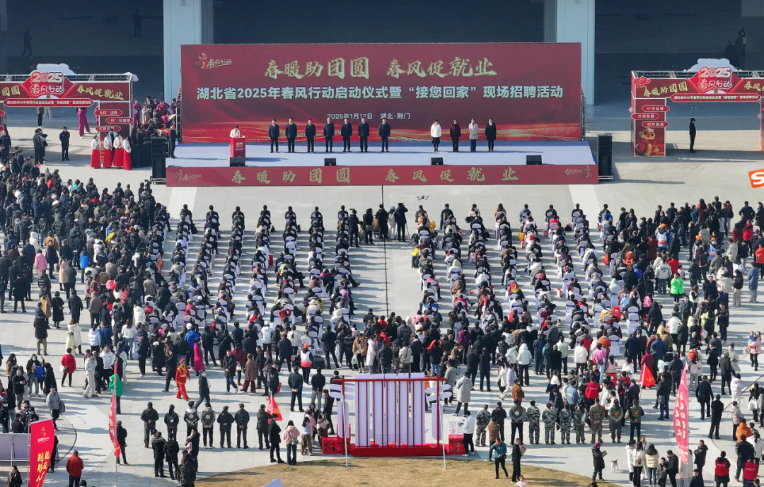 湖北省2025年春风行动启动仪式暨“接您回家”现场招聘活动在荆门市举行