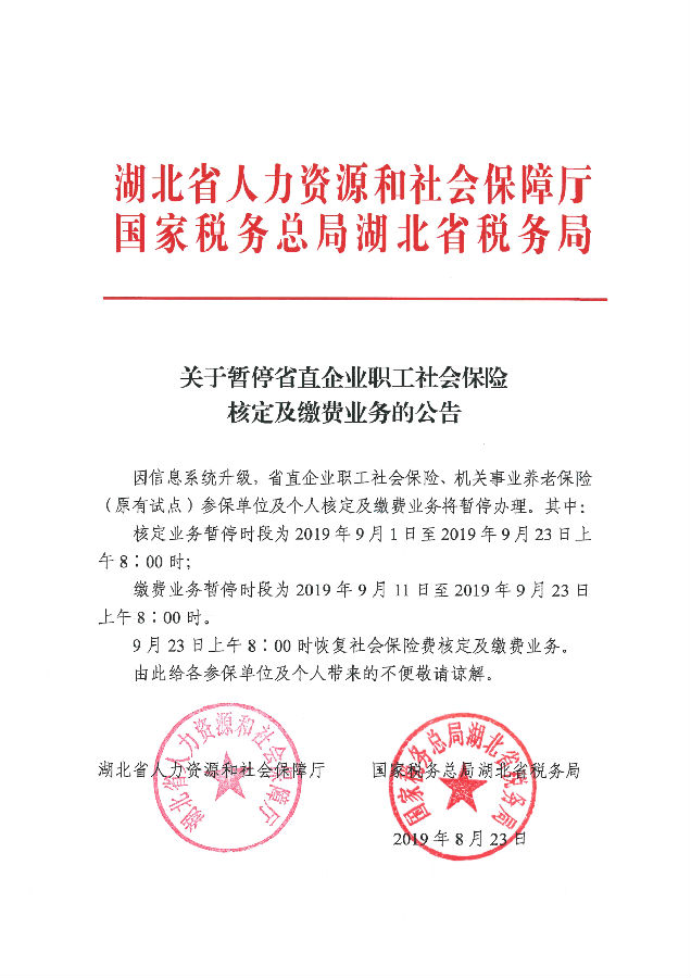 朱古力av 、国家税务总局湖北省税务局关于暂停省直企业职工社会保险核定和缴费业务的公告