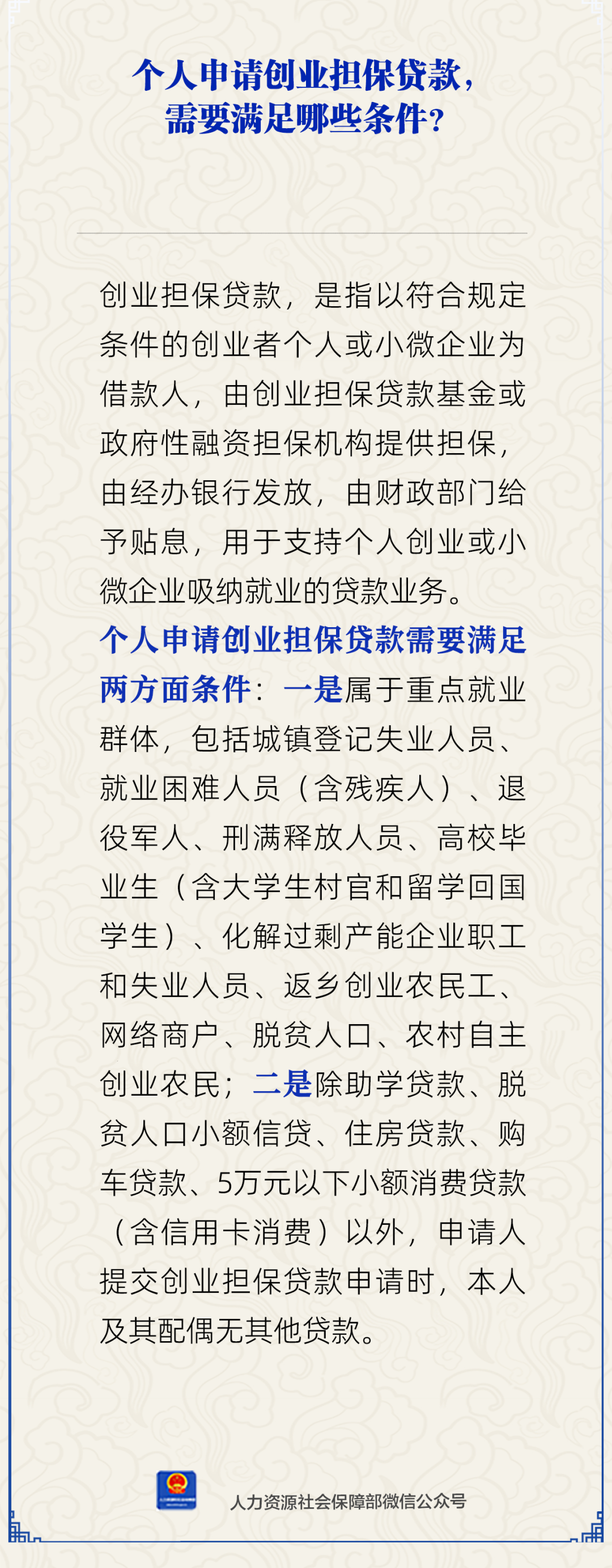 【人社日课·8月11日】个人申请创业担保贷款,需满足哪些条件?