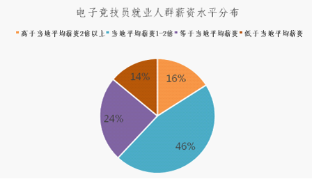 选取电竞选手(明星选手外)、电子竞技教练、电竞数据分析以及电竞项目陪练等人群进行调研, 86%电子竞技员从业者的薪资是当地平均工资1-3倍,电子竞技员薪资普遍高于当地平均薪资。